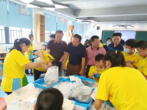 慰问活动结束后,林庆财一行还到华中师范大学附属惠阳学校和新圩中学开展青少年科技教育工作调研,实地考察相关学校的创客室、科普实验室和荣誉室等,并与学校领导和科技教师进行深入的座谈交流,对如何有效促进校园科技创新活动广泛开展提出了具体的指导性意见和建议。