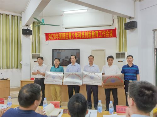 会上,区科协、区教育局相关负责人为获评 “惠阳区青少年科学教育特色学校(2020-2025年)”的4所学校授牌;向沙田镇中心小学等11所学校赠送了“小小科学家”科技教育活动资源包。随后,杨永平对第16届惠阳区青少年科技创新大赛参赛作品的规格要求、报评时间、送展及布展注意事项和颁奖仪式等相关事宜等作了具体讲解和强调。林庆财代表组委会对办好本次大赛提出了具体要求:一是各学校、各相关单位要充分认识举办本次大赛的重要意义,切实加强组织领导,明确责任分工,认真谋划落实,确保大赛安全顺利举行,并取得圆满成功;二是各学校、各相关单位要切实按照组委会的统一部署,各司其职,密切合作,精心组织,全力做好大赛各项准备工作,确保大赛各项任务圆满高效完成,并取得优异成绩。
