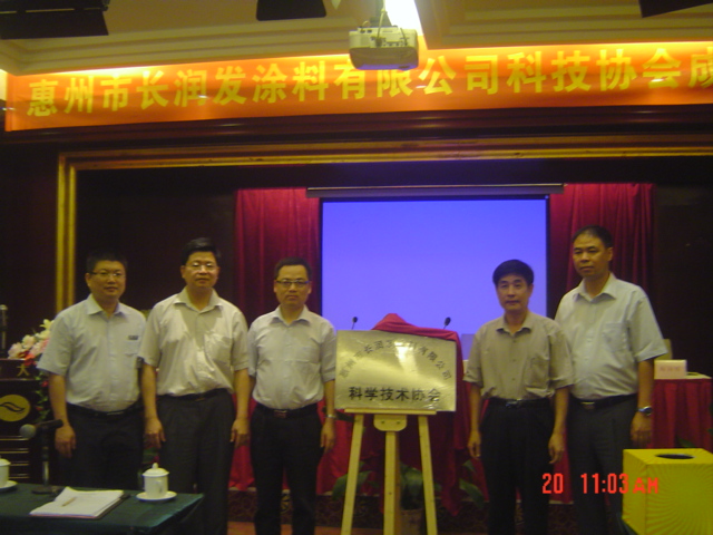 5月20日上午,惠州市长润发涂料有限公司科协成立大会隆重举行。市科协副主席邓森宏,区科技局局长、科协主席张招权出席大会,并为该公司科协揭牌。