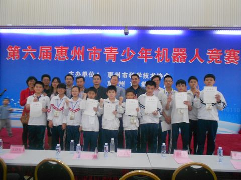 4月21日,第六届惠州市机器人竞赛在惠州市科技馆举行。惠阳区选手团结协作、顽强拼搏,一举夺得3金2银2铜的好成绩。