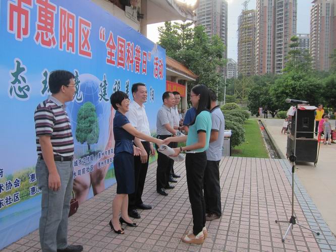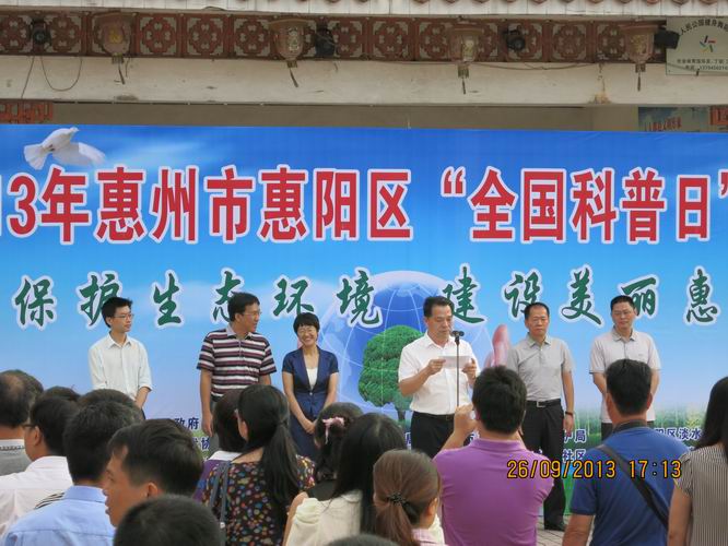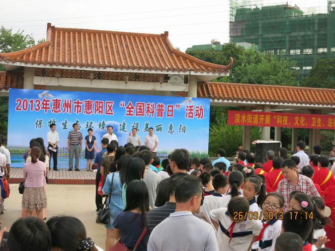 9月26日,惠州市惠阳区在淡水人民公园举行主题为“保护生态环境,建设美丽惠阳”的“2013年惠阳区全国科普日”科普游园活动。此次活动由惠州市惠阳区人民政府主办,惠阳区科协、文明局、环保局和淡水街道科普协会共同承办。副区长陈志明出席活动并作动员讲话。主办、承办和区直30多个相关单位的近100名科普志愿者,淡水街道干部群众、学生代表和路过的市民共500多人参加了活动。