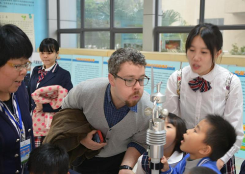 外国友人近距离体验气象仪器