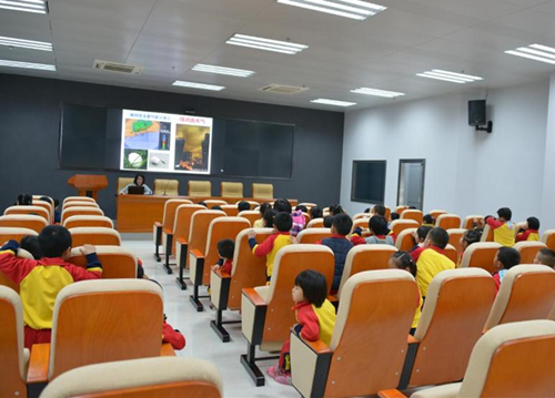 小朋友聚精会神听气象科普讲座