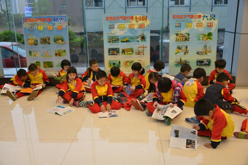 小朋友席地而坐抢鲜气象知识