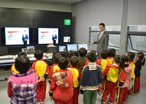 小朋友走进气象影视中心与气象主播互动