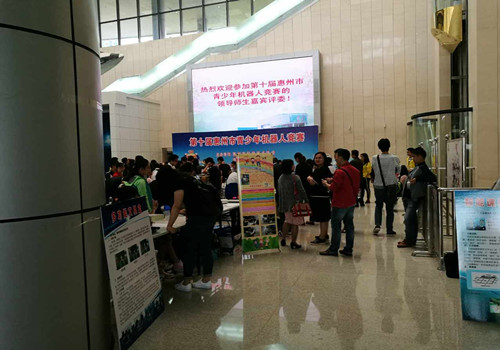 由惠州市科学技术协会、惠州市教育局联合主办,惠州科技馆、惠州市青少年机器人协会协办的第十届惠州市青少年机器人竞赛于2017年4月22日在惠州科技馆举行,来自市直、县(区)7个代表团的181支队伍500多名师生参加了竞赛。