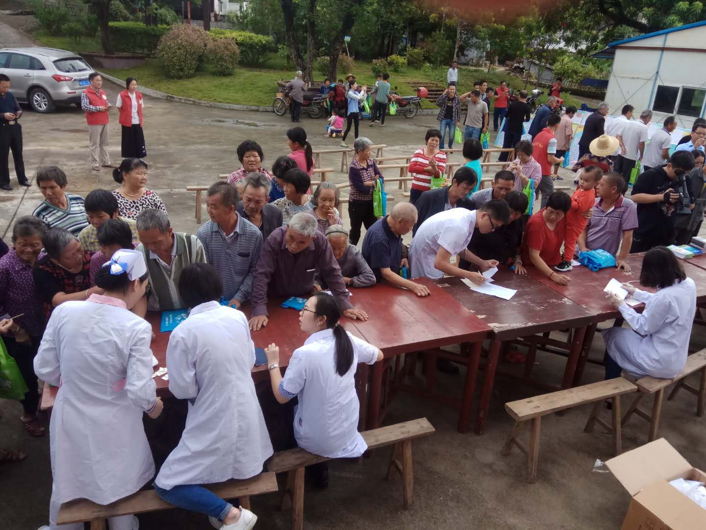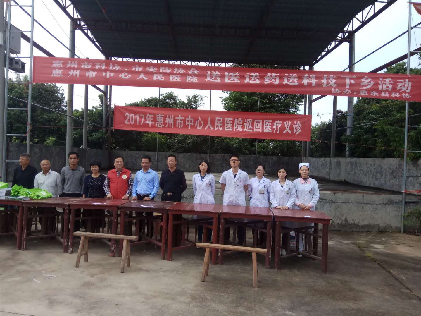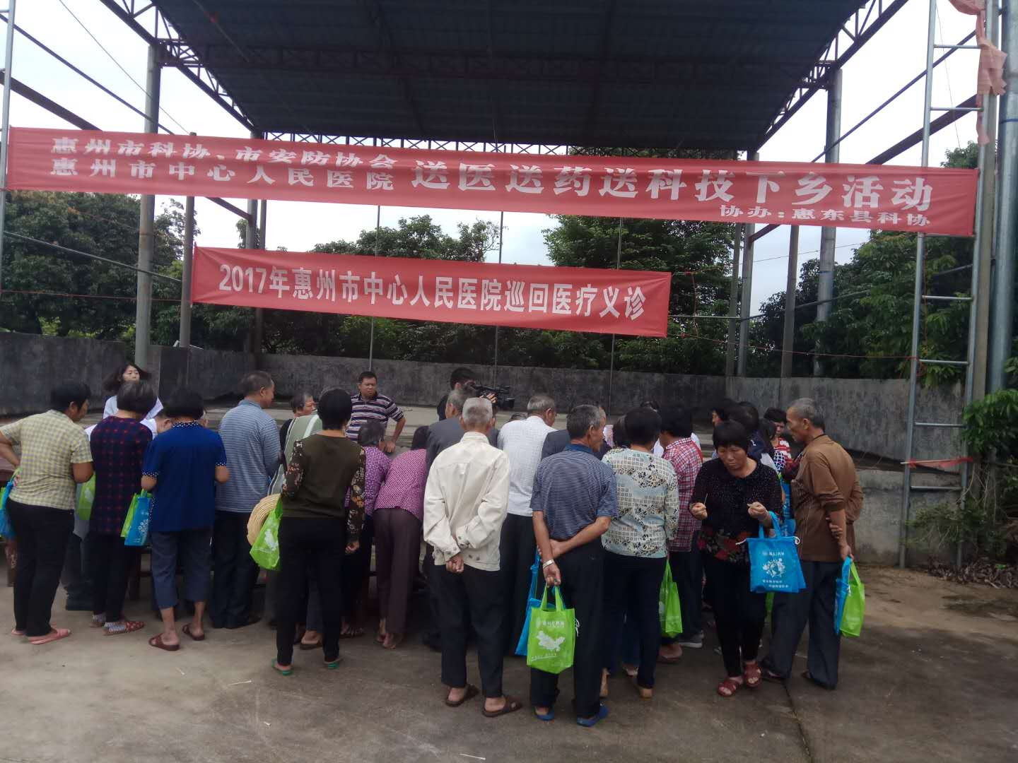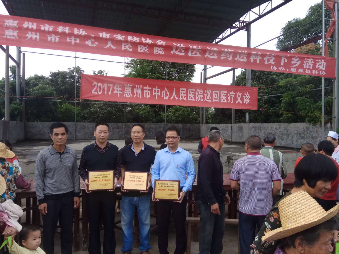 10月17日是第四个全国扶贫日,惠州市科协联合市安防协会、市中心人民医院、惠东县科协到驻点村惠东县多祝镇维德村开展扶贫日活动,活动内容有:市科协联合市中心人民医院开展送医送药下乡活动,市安防协会为维德村安装的道路视频监控正式启用,科普大篷车下乡开展科普图片展,科技资料的派发。活动期间,市中心人民医院的医生为维德村150多位村民开展了义务诊治、健康检查,并为村民送去了常用药品。市科协及惠东县科协共为村民赠送科普资料500多份,维德村向市安防协会赠送了“百企帮百村、百会帮百村”、“精准扶贫、平安维德”牌匾,这次活动深受村民的欢迎。