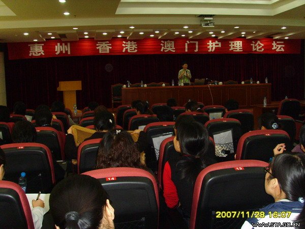 由惠州市护理学会、惠州市科协共同举办的“惠州、香港、澳门三地护理论坛”于2007年11月28日在惠州市委党校多功能报告厅举行,共有300多名来自我市各县区护理战线的白衣天使们参加。