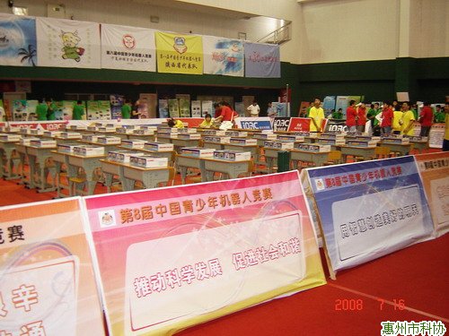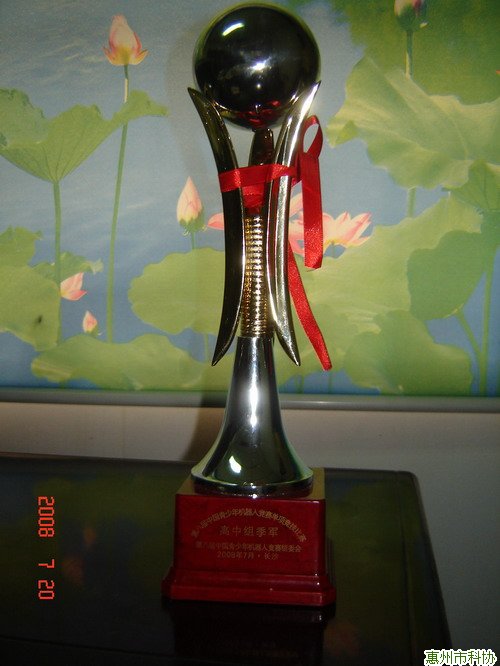 参赛历程: 2008年4月:在惠州市举行的首届青少年机器人竞赛中荣获惠州市单项竞技高中组“福娃登长城”项目第一名。 2008年5月:代表惠州市参加在深圳龙冈举行的第八届广东省青少年机器人竞赛,取得了广东省第一名