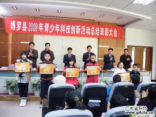 2009年1月10日,惠州市博罗县科协、教育局联合召开了2008年青少年科技创新活动总结表彰大会,各镇(办)中学、中心小学、中职学校、县直学校(幼儿园)分管青少年科技教育工作的领导和科技辅导员及参加第七届惠州市青少年科技创新大赛获奖的师生共180人参加了会议。