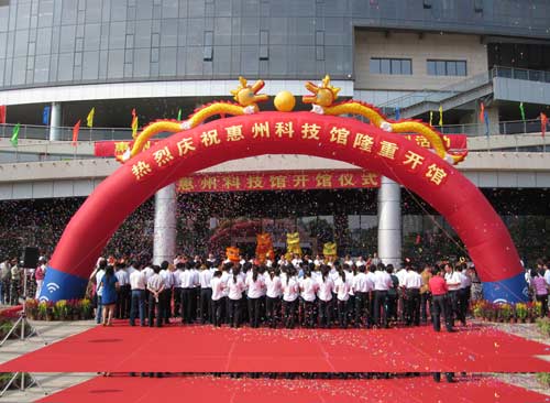 在喜迎新中国成立60周年之际,惠州科技馆于9月27日开馆,市委书记黄业斌、市长李汝求、中国科协常委、科学与人文专门委员会主任张开逊、广东省科协副主席吴焕泉等领导参加了开馆仪式。
