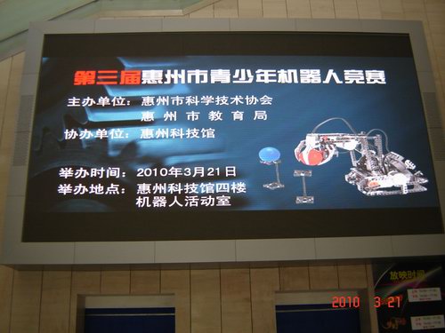 由惠州市科学技术协会、教育局主办的第三届惠州市青少年机器人竞赛于3月21日在惠州科技馆举行,吸引了各县区37支参赛队的角逐,88位参赛中小学生上演了一场精彩的“机器人总动员”。