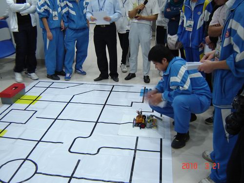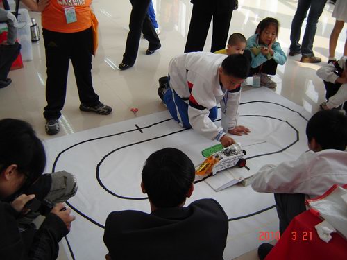 在以“群星璀璨世博会——创建美好的城市生活”的创意比赛中,世博会导游车、环卫机器人、“和谐号”世博直通车、“度度水”倒水机器人、世博引路机器人、灭火机器人、“罪恶克星”警察机器人在参赛队员的操作下一一亮相,接受来自专家、老师、市民等的观摩测评,小选手们还现场进行“推介”,介绍各自机器人的由来和魅力。