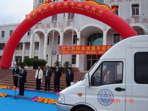 2010年3月30日下午,惠州市科普大篷车启动仪式在爱丁宝双语学校举行,惠州市人民政府副秘书长叶荣辉、惠州市科协主席邹平生、副主席邓森宏、张伟钦,以及市科协、市教育局有关工作人员、各县(区)科协领导、惠城区教育局领导、市各新闻媒体的记者、爱丁宝双语学校的师生共约400余人参加了启动仪式。