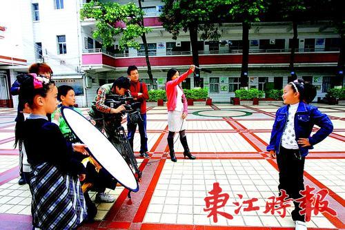 栏目组在市十一小拍摄节目(资料图片)。东江时报记者张艺明 摄