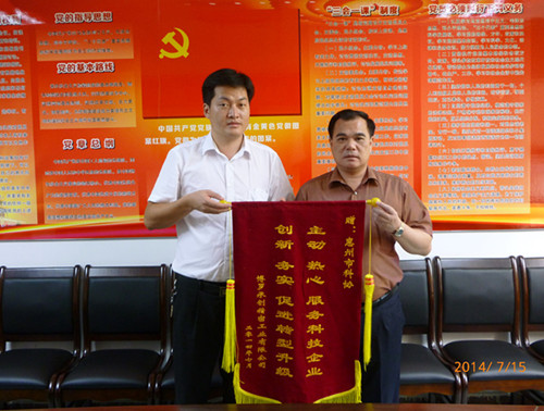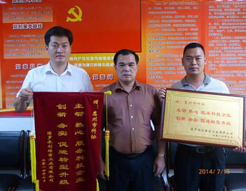7月15日上午,博罗承创精密工业有限公司为惠州市科协送来了一面题为“主动,热心,服务科技企业;创新,务实,促进转型升级”的锦旗和牌匾,衷心感谢惠州市科协为其提供的优质、高效的服务。