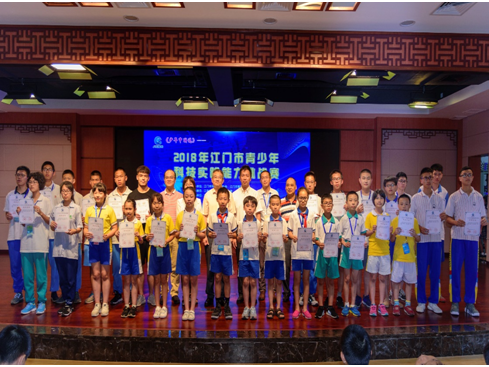 6月19日,为实施青少年科学素质行动,培养青少年科技创新能力和动手实践能力,由江门市科协、江门市教育局联合主办,江门市广播电视台、江海区科协、江海区教育局协办,江海区外海街道中心小学承办的《少年中国说》-2018年江门市青少年科技实践能力挑战赛于6月16日落下帷幕。市科协主席吴森、市教育局团委书记刘永强、江海区科协副主席黄剑锋、区教育局纪检组长张艳芳等领导和来自全市中小学校的参赛学生选手、科技辅导教师和有关学校师生代表400多人参加了颁奖典礼。