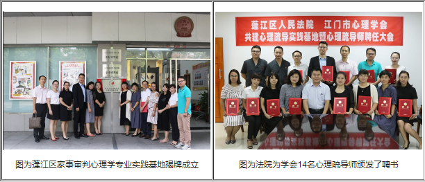江门市心理学会联合蓬江法院设立家事审判心理学专业实践基地