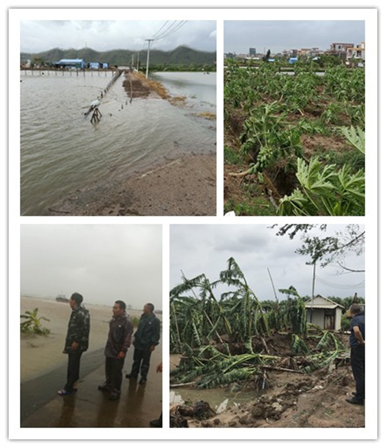 这次受灾农村主要在大鳌尾、大八顷村,这两条村围堤外的虾塘受灾最为严重出现堤外漫顶,鱼虾出逃。农技人员深入鱼塘指导养殖户修复和整治养殖生产基础设施,在摸清现有种苗存量的情况下,积极做好种苗调剂工作,补放养种苗,强化生产管理。除养殖外,台风对香蕉树的杀伤力也很大。村民陈四平苦笑着说,一场台风“吹跑”了近20万元的收入。农技人员及时指导对倒伏而没有折断的蕉树,提出要及时扶正,立桩固定,培土压实,促进生长。