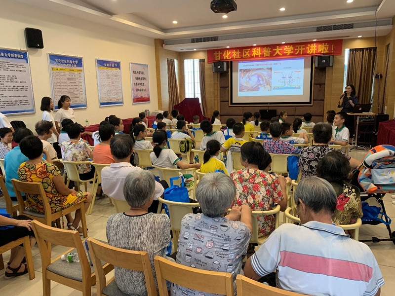 最后,嘉宾代表和社区学员们参观和了解甘化社区科普大学的建设情况;同时聆听了由气象专家黄青兰老师带来的首场科普课《台风知多少》,现场气氛热烈;学员们听得津津有味,纷纷点赞,表示社区科普大学能让大家在家门口就能学习到实用的科普知识。