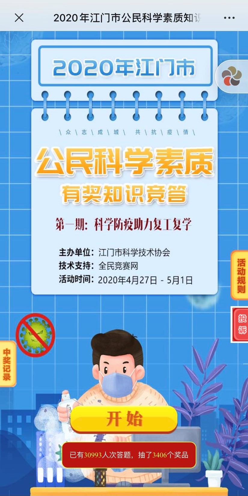 江门市科协举办“科学防疫助力复工复学”线上科普知识有奖竞答活动