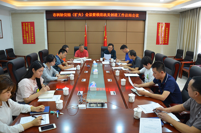 10月26日,江门市科协在市科协会议室召开党组(扩大)会议暨模范机关创建工作总结会议,会议由党组书记、副主席邹敦华同志主持,机关全体党员干部职工参加。