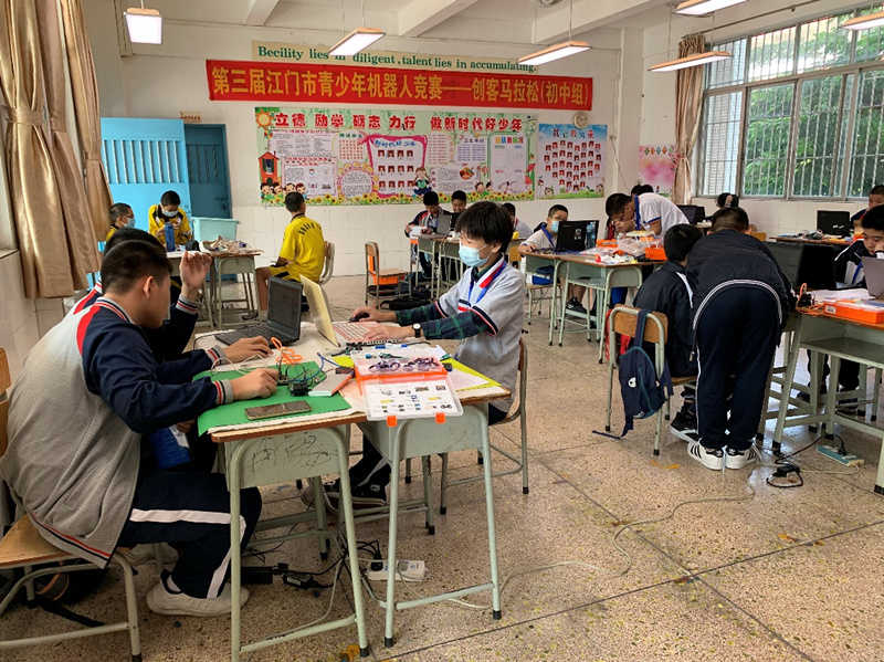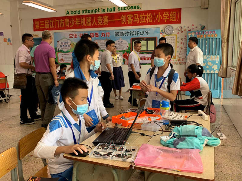 这次活动旨在提高江门市青少年的动手实践能力和创新水平,培养优秀科创后备人才,共吸引各市区近100所学校790名学生参赛比拼,竞赛包括虚拟和实体青少年机器人等10个项目。