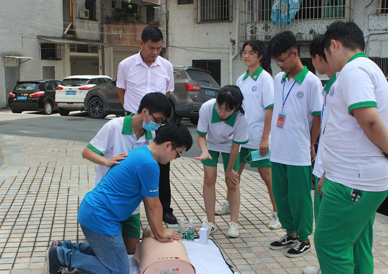 图为台山市敬修职校护理系学生教导群众如何心肺复苏抢救 |