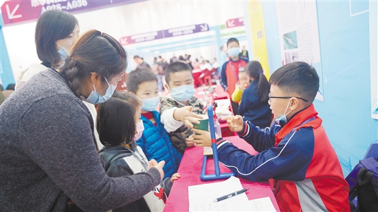 大小观众在仔细聆听小小发明家的讲解