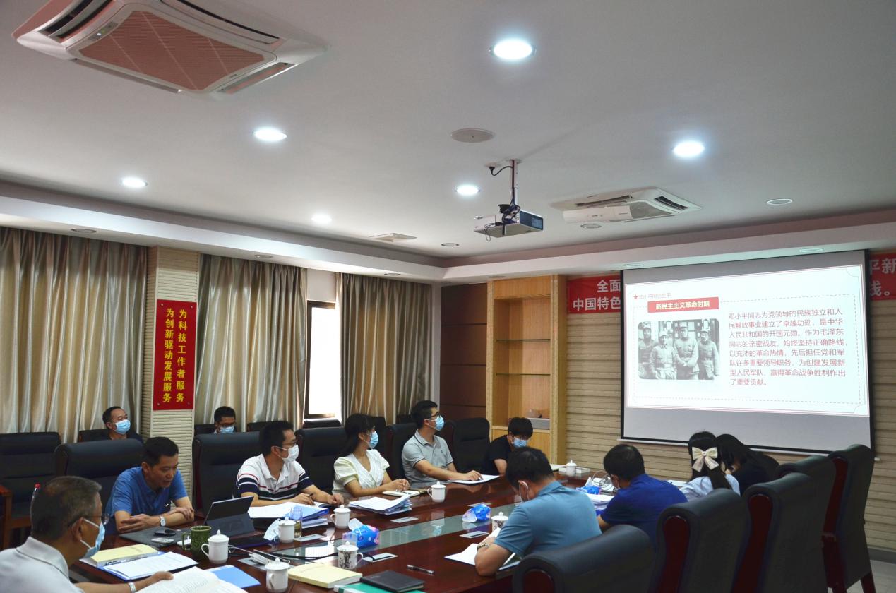 6月10日,江门市科协党组理论学习中心组召开专题学习扩大会议,集中学习研讨习近平总书记关于党的历史和革命传统的重要论述精神,推动党史学习教育走深走实。会议由江门市科协党组书记、副主席邹敦华主持,党组成员、副主席朱金治作专题党课报告,市科协机关全体干部职工、市纪委监委驻市工业和信息化局纪检监察组有关同志参加学习会。