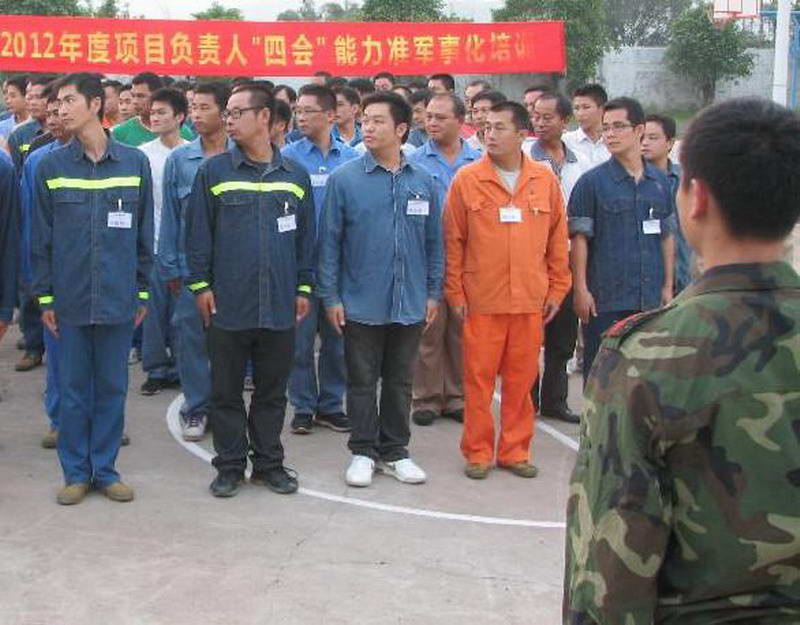 9月20日至24日,江门市电机工程学会在开平开锋基地,对江门地区59家基建施工单位的132名项目负责人分两批进行“四会”能力准军事化培训。培训全程采用准军事化管理,以“四会”(会说、会写、会干、会指挥)能力培养为中心,围绕施工现场作业过程管理,设置相关课程,通过准军事化培训,培养令行禁止的作风,提高项目负责人的业务素质和组织协调能力。参加培训的项目负责人感叹说:过去我们总是各忙各的,工作缺少条理,现在不同了,经过“四会”能力培训后,我们的工作、组织、协调、语言表达能力都得到很大的提升。