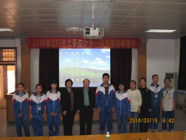 中国科学院老科学家科普演讲团成员、原中国科学院地质与地球物理研究所研究员徐文耀教授应江门市科协诚邀,于3月19日下午来到江门市外海中学多媒体电教室,为学校200多师生作《是谁保护着我们地球?》科普演讲报告,讲授深奥的现代科学技术知识,介绍最新的科学技术成果和未来发展趋势。精彩易懂的演讲, 博得学校广大师生兴趣。