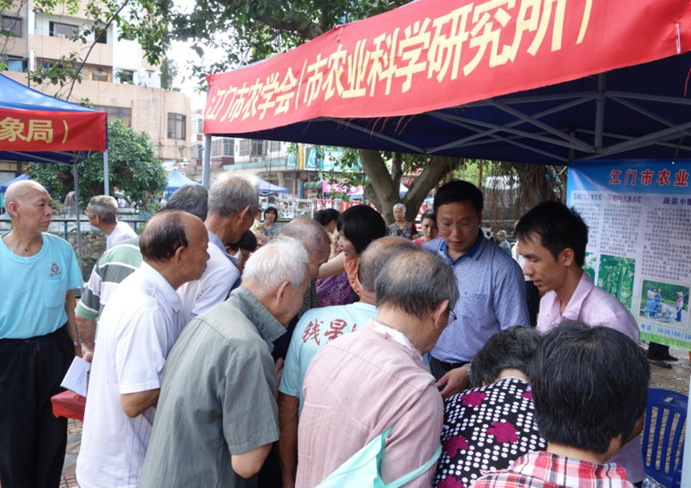 江门市农学会在持续暴雨过后的关键时期,为进一步帮助农村救灾复产,推广农业作物良种良法,学会理事长冯锦乾高级农艺师、陈仕军高级农艺师一行5人,于5月16日前往新会区三江镇学会科技服务站开展科技服务。现场派发农科宣传资料700多份和优质水稻品种、蔬菜种子近1000包,受惠农民近500人,深受当地群众的欢迎。