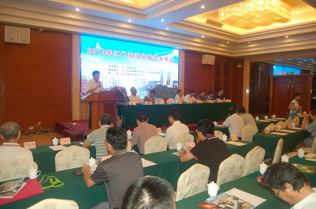 这次年会给消化病学最常见疾病的诊治带来了最新的进展信息,对提高江门市常见消化科疾病的诊疗水平起着巨大指导作用,课题包括“结肠癌的早期诊断与治疗”、“胰腺癌的诊疗进展”、“药物性肝病诊疗”、“炎症性肠病的诊疗”、“便秘的诊疗进展”、“肝硬化的诊疗进展”、“EVL治疗食管静脉曲张破裂出血”、“非静脉曲张上消化道出血治疗”、“肝癌的诊疗进展”、“双气囊小肠镜的临床应用”、“脂肪肝的诊疗进展”和“超声内镜的临床应用”。在年会召开前的9月19日下午,还邀请了省著名专家姜泊教授和陈其奎教授进行专题讲演——《小肠疾病的诊疗问题》,深受欢迎。