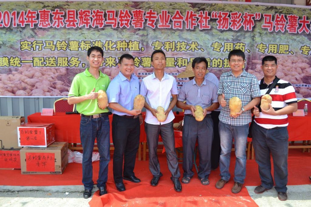 6月12日,江门市植保有限公司科协联合惠东县农业技术推广中心、平海镇农业办公室,在辉海马铃薯专业合作社举办首届“扬彩杯”马铃薯种植测产竞赛。当地130多名马铃薯种植户参加了比赛,通过比赛测产,单薯冠军3.8斤,亩产冠军10500斤。亩产冠军马铃薯种植户冯文星在现场接受了当地电视台和南方农村报记者采访。