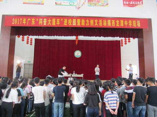 据悉,本次“科普大篷车”进校园活动持续至本月15日,分别在揭西县坪上中学、龙潭中学、揭阳产业转移工业园乔东小学、榕城区岐山中学等4所学校开展活动。参加本次活动师生约5000人(次),得到学校师生热烈欢迎.