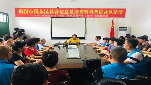 为深入贯彻习近平新时代中国特色社会主义思想和习近平视察广东重要讲话精神,加快科普信息化建设,纵深推进“全国科普示范区”和文明城市的创建,七一期间,揭阳市揭东区科协组织开展“礼赞共和国,追梦新时代”系列科普活动。活动时间为:2019年6月28日-7月5日,首场活动于6月28日下午在揭东区老体协科普基地举办。