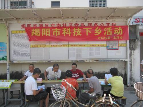 9月26日,揭阳市科协、揭阳市科技局在空港区京南社区举办科技下乡活动,设置科技下乡宣传摊位,向群众发放科普宣传资料和图册,普及科学技术相关知识,并接受群众咨询。