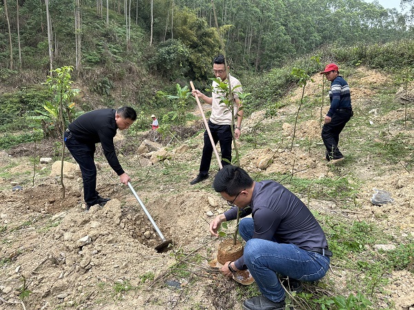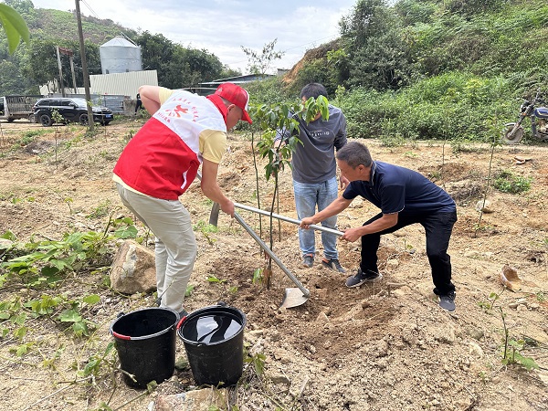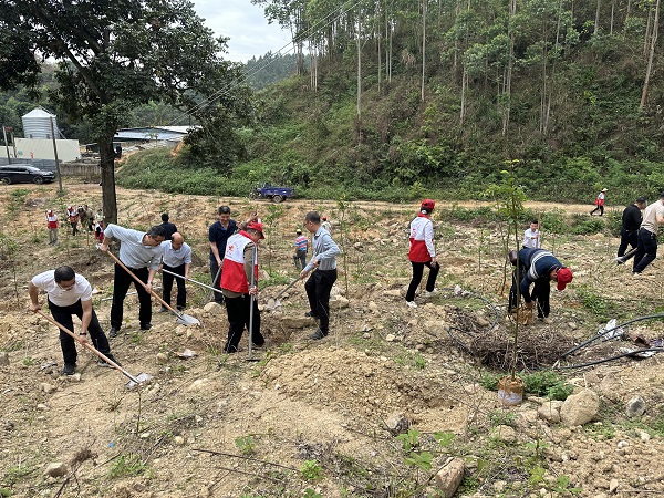 植树现场,大家热情高涨,纷纷撸起袖子,挥铲挖坑、扶苗填坑、提水浇灌,每个环节都有条不紊。在大家的携手努力下,一棵棵小树苗挺立在春风中,展现出勃勃生机。此次活动共种植阴香树110棵,不仅为大地增添了一抹新绿,也寄托着大家对生态文明的美好向往和期望。