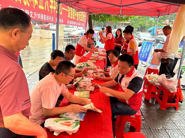 活动通过设置咨询台、悬挂横幅标语、展出宣传展板、发放宣传资料等形式,向过往群众和沿街商户讲解生态环境保护、垃圾分类、绿色低碳生活、防灾减灾、石油化工等方面知识,积极引导广大群众树立环境安全意识、绿色环保意识和文明卫生意识。本次活动共发放宣传资料1000余份。