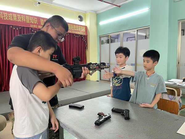 7月18日,在普宁市白沙共享书屋多功能活动室,30多个学生齐聚一堂,一起走进枪械的世界,探索那些令人瞩目的国防利器。现场老师讲述了国防的重要性,分享了火门枪、火绳枪、击发枪,冲锋枪、狙击步枪、自动步枪和突击步枪等枪械知识,指出枪械作为国防力量的重要组成部分,其发展与演变见证了人类军事科技的进步与创新。