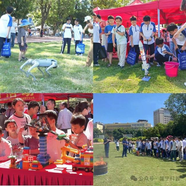 揭阳市科协党组成员、副主席、三级调研员徐景云,揭阳市科协党组成员、副主席吴跃群,普宁市政协副主席陈蔓瑛,以及普宁市、榕城区、揭东区、揭西县、惠来县科协主要负责同志等参加了活动,一起到各个摊位了解活动开展情况。活动现场设置科技互动体验区,以趣味互动与深度体验为核心,邀请专业科学导师团队,呈现空气炮、掌上火焰、3D打印、水火箭、机器狗等科学秀表演,将抽象的科学原理转化为生动体验,展现科技与教育的创新融合,激发青少年科学探索热情,让他们在动手实践与趣味体验中,埋下热爱科学、勇于探索的种子。