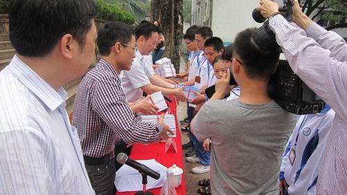 5月16日,广东科学馆“科普大篷车”首站开进了揭阳市空港经济区炮台镇新华中学,给这所具有优良学风校风的名校带来一片生机活力。当天上午主办方组织了学校4000多人抓住雨天初睛的有利时机,在校园广场举行全市“科普大篷车”进校园的启动仪式。揭阳市委副书记谢峻出席仪式并讲话,他希望各级科协和学校要充分利用这一有利时机,进一步激发广大青少年崇尚科学、热爱科学、运用科学的热情,增强科学素质,增强科技创新能力、树立远大理想,为建设我们的美好家园、报效祖国而努力奋斗!