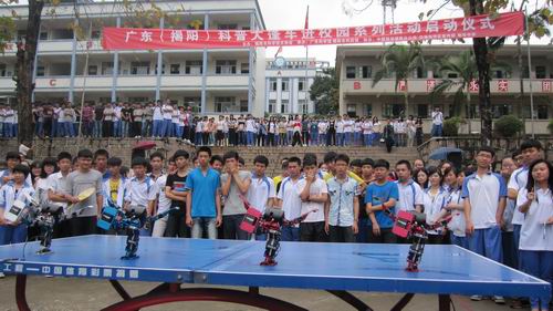 启动仪式结束后,科普大篷车分别在空港经济区新华中学、榕城区榕东中学、新兴学校、蓝城区贤兴中学、桐坑中学开展活动,所到之处深受广大师生热烈欢迎。师生们亲身体验启迪思维的车载展品、益智互动展品、玩转思维智力大比拼系列实物展,真切感受科技的无穷魅力;尤其是机器人演示“星球大战”吸引了青少年学生,发出了惊奇的赞叹,爆发出阵阵掌声。