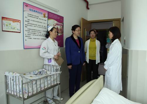 茂名市人民政府副市长崔爽(左二)走访慰问科技工作者张帆(右一)