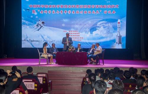 在11月2日的活动启动仪式上,五位老科学家们分别作了专题演讲,用浅显、通俗、幽默的语言,向广东石油化工学院的师生们讲解航天航空、工程爆破、卫星气象等方面的科普知识。在“老科学家与青年学生面对面访谈会”上,老科学家分享了他们的工作经验和人生经历,以微信和现场提问方式,与学生进行互动,解答他们的疑难问题。