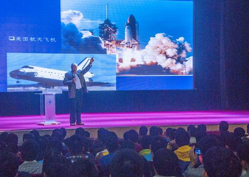 张厚英教授向学生们讲授“航空航天”知识