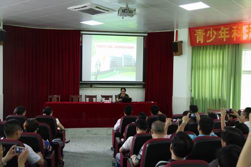 本次活动还邀请了佛山市禅城东鄱小学校长周少萍作青少年科技教育经验介绍,周校长结合东鄱小学的实际讲述了自己从事青少年科技创新教育的工作理念和方法,分享了她30多年开展青少年科技创新工作经验,让在场的听众受到启发。