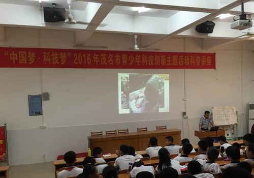 在“六一”国际儿童节当天,“中国梦·科技梦”2016年茂名市青少年科技创新主题活动启动仪式在茂名市愉园中学举行,活动由团茂名市委、茂名市教育局、茂名市科技局、茂名市科协、茂名市少工委联合主办,旨在为茂名市青少年营造讲科学、爱科学、学科学、用科学的浓厚氛围和良好风尚,鼓励青少年关注现代科技发展趋势,培养学生勇于探索、敢于创新的精神和能力,进一步提升茂名市青少年的科学素养和创新创造能力。团茂名市委书记何龙江、茂名市教育局副局长麦丽敏、茂名市科协副主席周德科、茂名市科技局副调研员丁德金等领导出席启动仪式;各区、县级市团委、教育局、科技局、科协、少工委的相关负责同志和市直各学校分管青少年科技工作的副校长、团委书记以及愉园中学全体师生参加本次启动仪式。