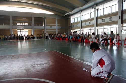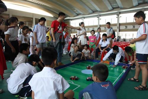 小学组“飞翔吧,纸火箭”(纸箭飞梭远准赛)现场